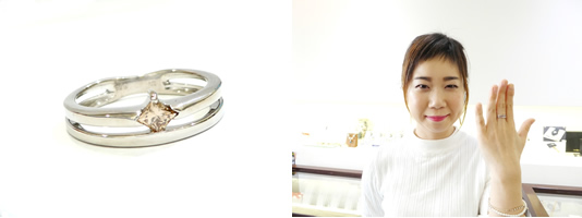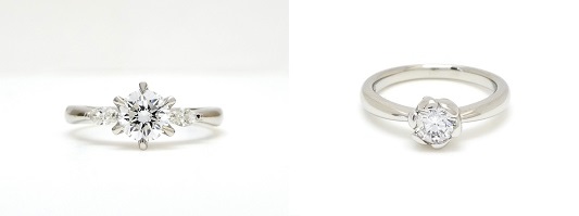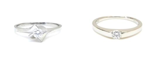 リフォームリング。 お客様持参の指輪(左)からダイヤだけを外し、新しい指輪にリフォーム(右)。