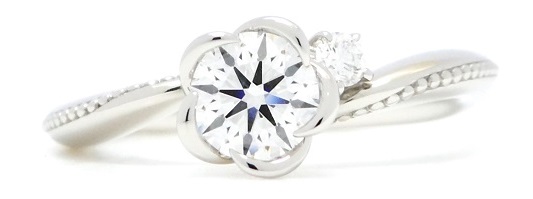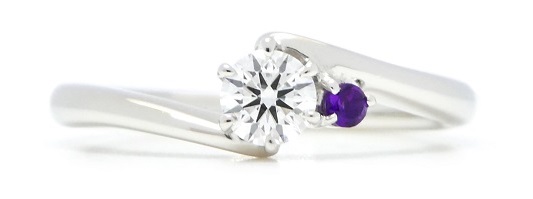 ダイヤモンドの脇に彼女の誕生石であるアメジストをセット。アメジストは『真実の愛を守ってくれる』と言われています。