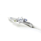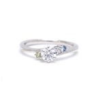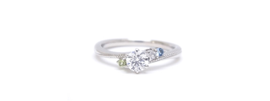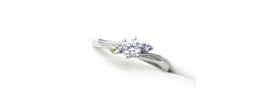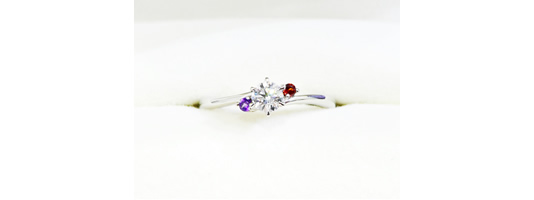 おふたりの誕生石をダイヤモンドの両脇にセット。