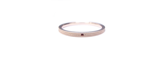ピンクゴールドリングに彼女の誕生石・ガーネットをセット。