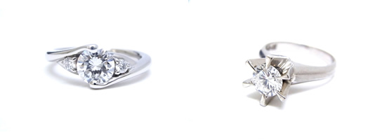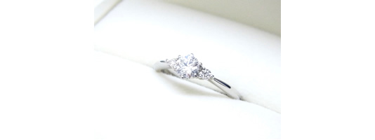 お母様から譲りうけたダイヤモンドリングをお客様の希望のデザインにリフォームしたリフォームエンゲージリング。