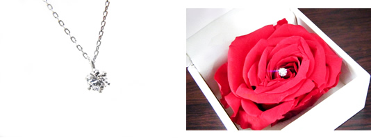 薔薇にセットしたダイヤモンドで彼女にプロポーズ。 後日そのダイヤを持ってふたりでペンダントのデザインを決めました。 これなら、彼女さんの好みがわからなくてもカッコよくプロポーズ出来ます!
